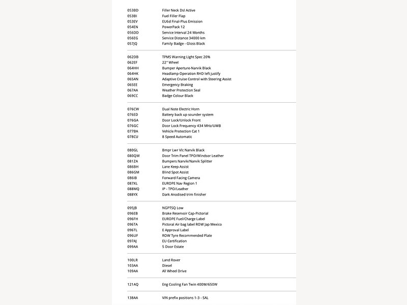 This is the manufacturer's list specification for this model, please verify the details when you view the vehicle. The list below will not include any additional options fitted to the vehicle or modifications.